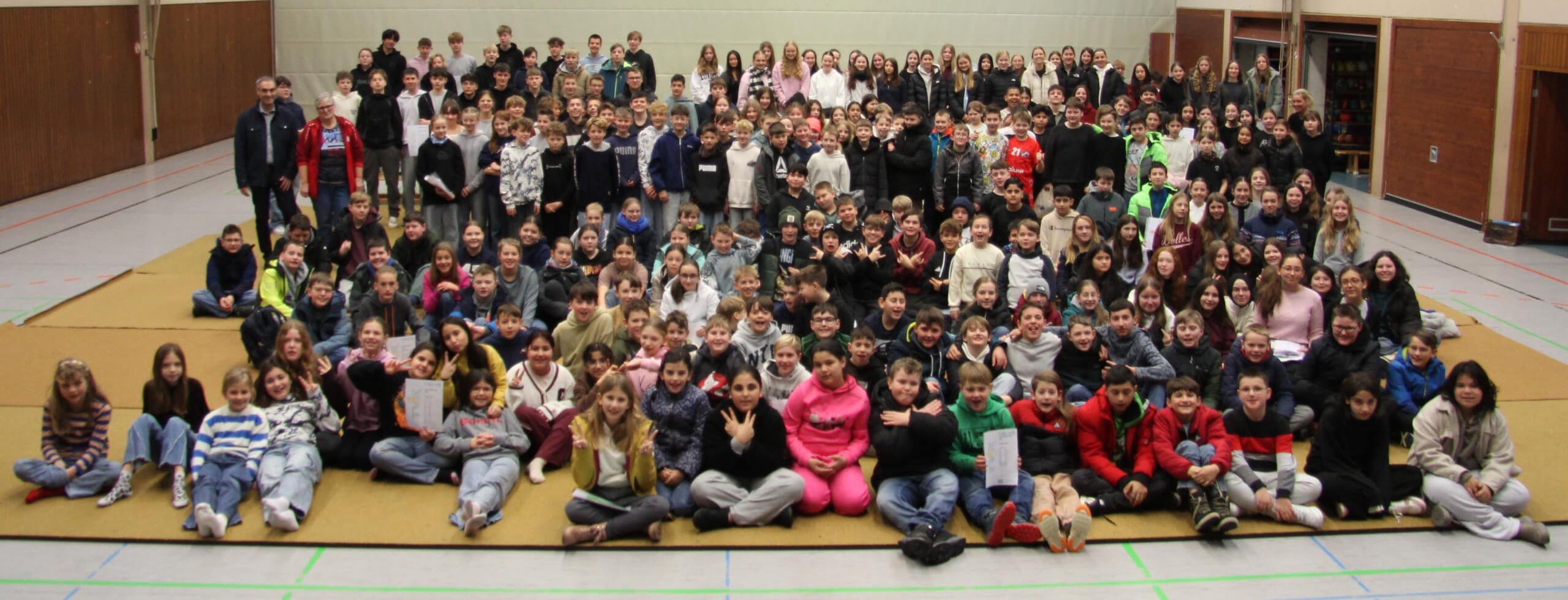 Seit vielen Jahren besteht eine erfolgreiche Kooperation zwischen dem Turnverein Kappelrodeck und der Schlossbergschule Kappelrodeck bei der Durchführung des Deutschen Sportabzeichens. Auch im Jahr 2025 zeigte sich diese Zusammenarbeit erneut als großer Erfolg mit einer sehr hohen Beteiligung. Insgesamt nahmen 21 Schulklassen mit 395 Schülerinnen und Schülern an den sportlichen Prüfungen teil. 328 Kinder erfüllten die Anforderungen für das Deutsche Sportabzeichen. Die erbrachten Leistungen verteilten sich auf 103 Abzeichen in Bronze, 145 in Silber, sowie 80 in Gold. Zu Beginn des neuen Jahres fand die Übergabe der Sportabzeichen im Rahmen von zwei kleinen Feierstunden statt. Die Auszeichnungen wurden von Silke Panter und Wolfgang Köninger vom Turnverein Kappelrodeck gemeinsam mit der Sportlehrerin Simone Pütz und Rektor Bertram Walter an die erfolgreichen Schülerinnen und Schüler überreicht. Die hohe Beteiligung und die Vielzahl an erreichten Sportabzeichen unterstreichen den Stellenwert des Sports an der Schlossbergschule, sowie den großen Wert der langjährigen und bewährten Zusammenarbeit zwischen Schule und Verein.